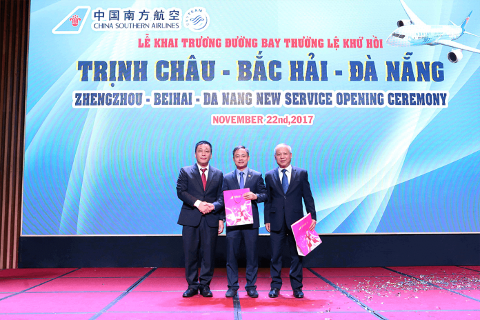 Vào lúc 10h30 sáng ngày 22 tháng 11 năm 2017, hãng hàng không China Southern đã tổ chức buổi lễ ra mắt và giới thiệu đường bay mới thường lệ: Đà Nẵng – Bắc Hải – Trịnh Châu.